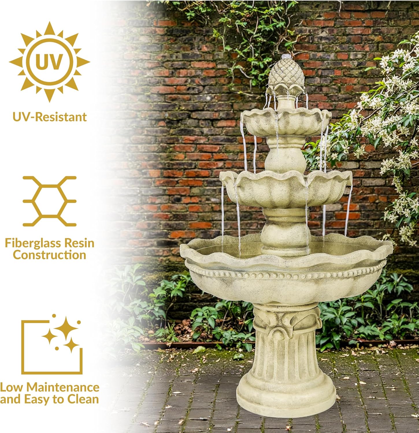 Sunnydaze 51-Inch Electric Water Fountain - Outdoor Water Feature - 3-Tier Outdoor Fountain with Pineapple Top - White