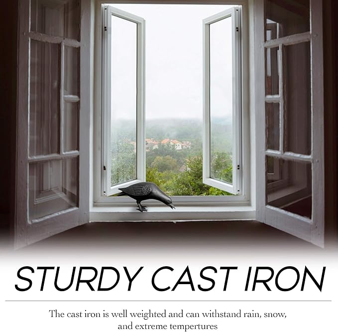 - Sturdy Metal Garden Art – Unlike the real thing, this crow statue will not fly away! The cast iron is well weighted to keep these garden statues where you place them. Rain, snow, and even moderate wind will not disturb these outdoor statues.