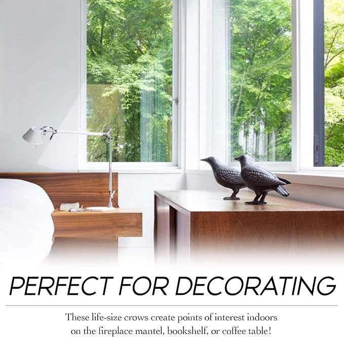 - Life Size Statue – These crow garden statues add interest where you place them: indoors on the fireplace mantel, bookshelf, or coffee table; these bird figurines are also perfect outdoors statues as well, in the garden or on the deck railing. Pick you favourite spot to display this delightful piece of crwo decor.