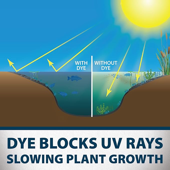 - Highly Concentrated Formula - Just toss pond dye packet into your lake or pond to treat 1/2 acre 4'-6' deep. Safe for recreational ponds, livestock, birds, pets, fish, wildlife and the environment.
