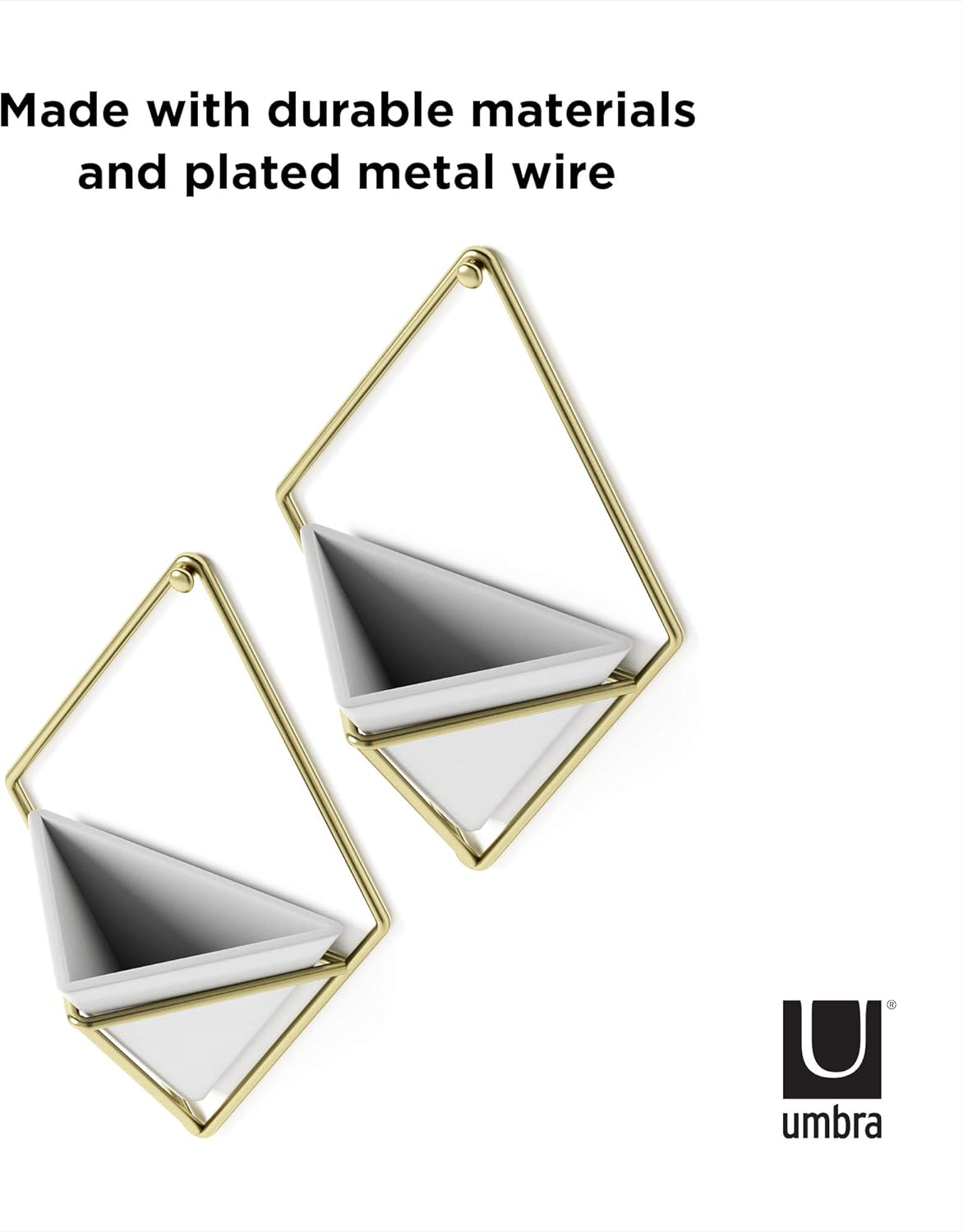 Umbra Trigg Hanging Planter Vase Wall Decor, Set of 2 Pots Containers for Succulents, Cactus, Faux Plants, and More, Small, White/Brass