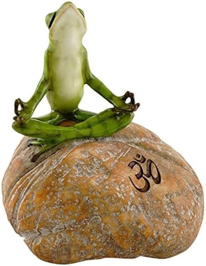 Top Collection Miniature Fairy Garden and Terrarium Statue, Meditating Frog on Rock with Om Symbol