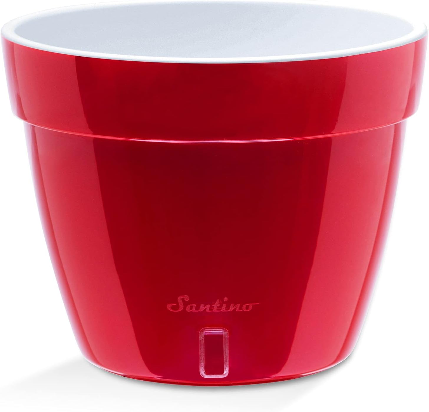 Santino ASTI 10.6 Inch Self Watering Planter RED-Pearl/White for Indoor Plants - Premium Quality Modern Plastic Pot w/Water Level Indicator for All House Herbs, Plants, African Violets and Dahlias