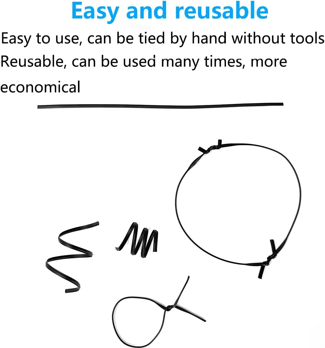 - lastic black twist ties can be reused. each of them is 15cm/6 inches length.They're very sturdy and plenty long, so they can be cut to fit the job at hand..