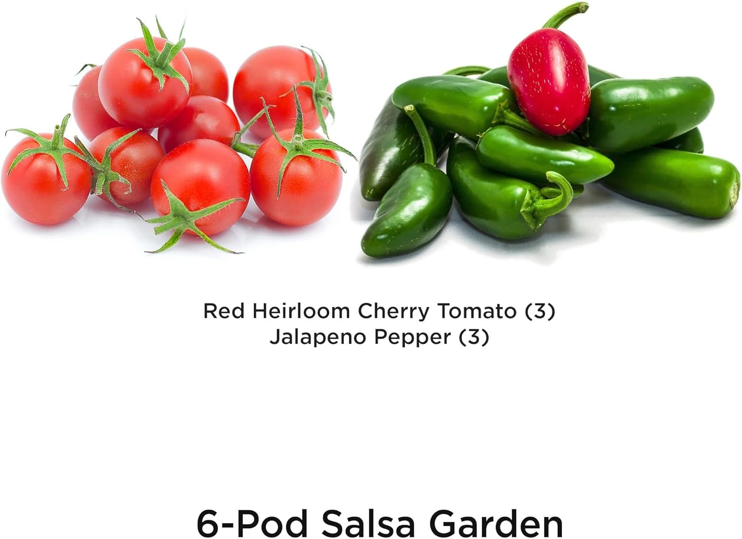 - INCLUDES SALSA GARDEN SEED KIT - 3 pre-seeded Red Heirloom Cherry Tomato pods and 3 pre-seeded Jalapeno Pepper Grow Pod
