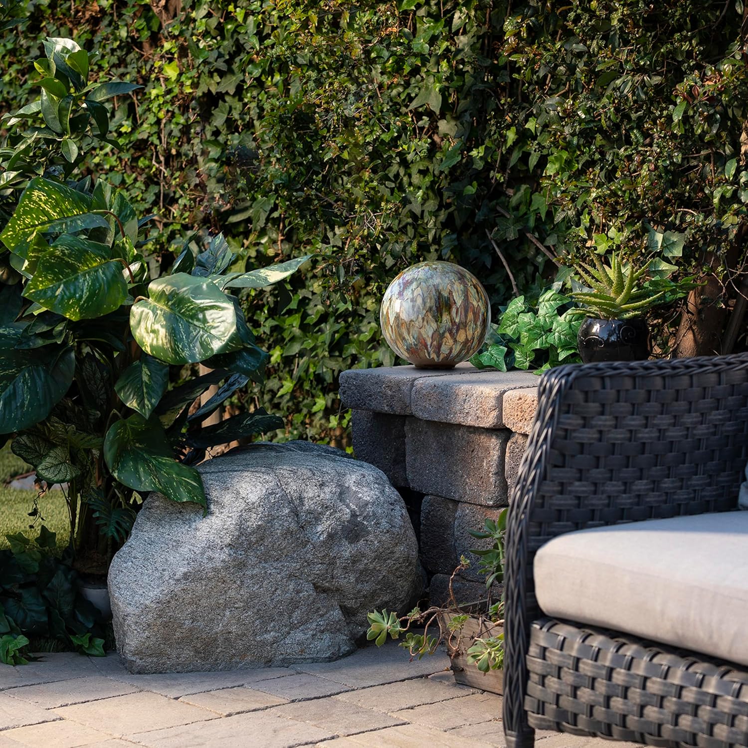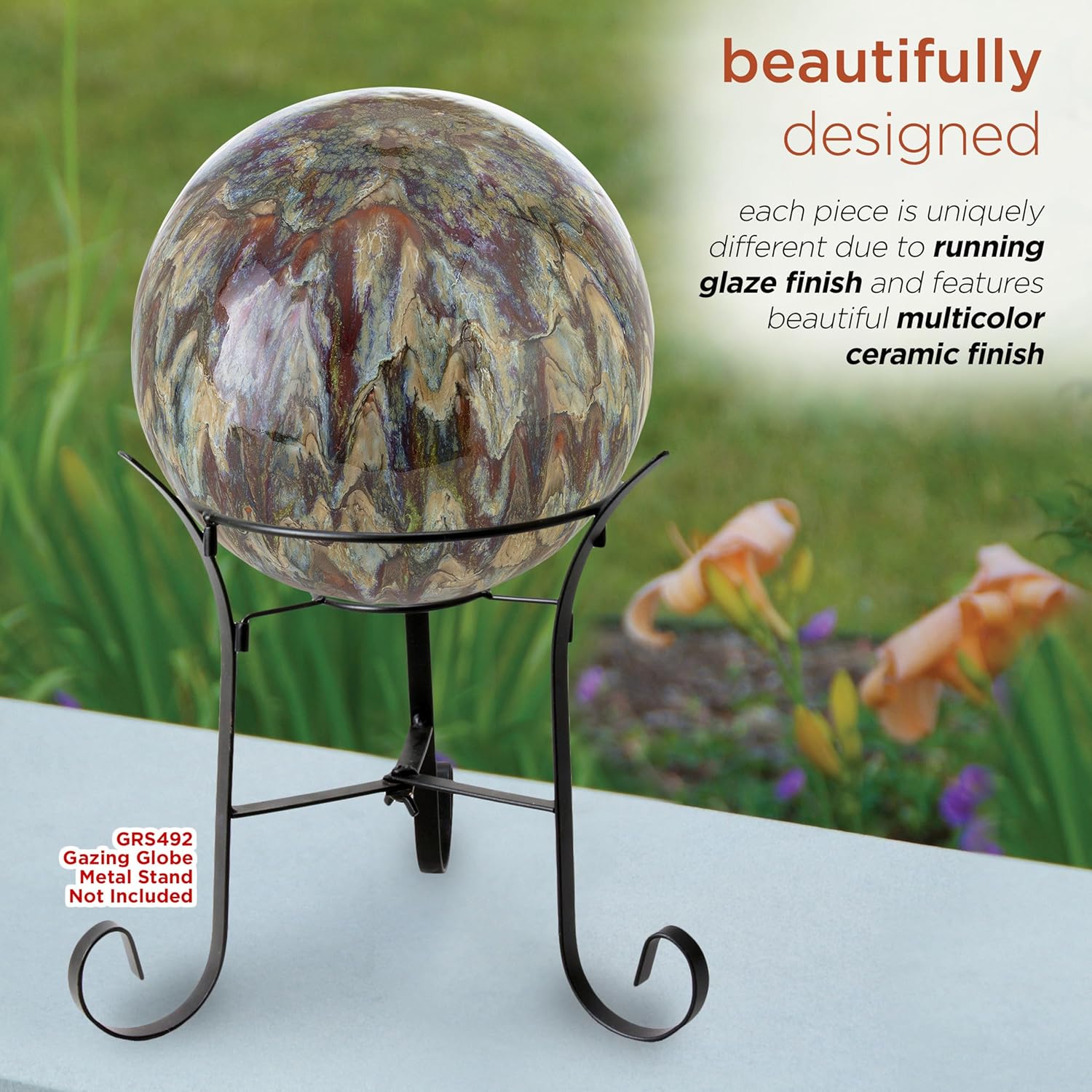 - DURABLE OUTDOOR ACCENT DÉCOR: Skillfully crafted from long lasting, non porous stoneware with a glazed finish, the orb can be cleaned easily to keep its reflective shine and earth tone colors