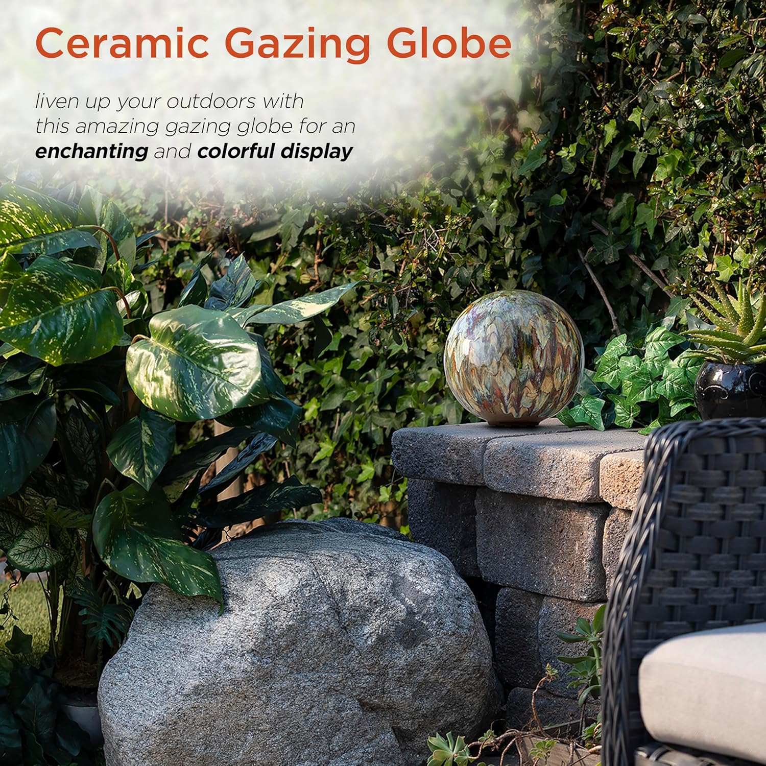 - OUTDOOR GARDEN DÉCOR: Gazing globe is made from multi colored painted ceramic, and provides a unique and decorative addition to your home's interior or exterior space with its elegant design