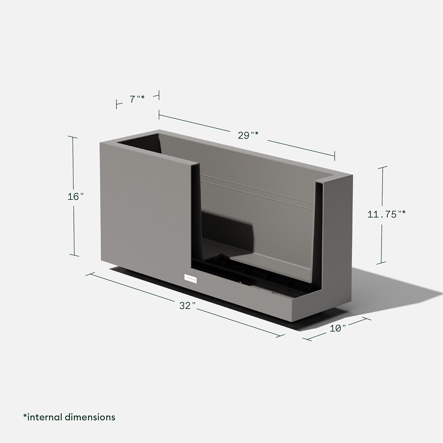 • DIMENSIONS & DETAILS: This double-walled planter’s exterior dimensions measure 16” in Height, 10” in Width, 32” in Length, and the interior dimensions measure 11.75” in Height, 7” in Width, 29” in Length. It comes fully assembled for easy use