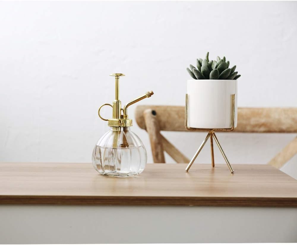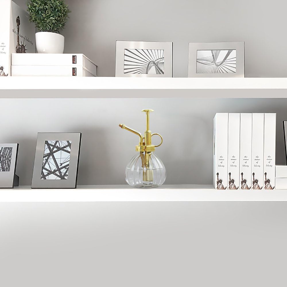 Plant Mister, 6.5" Tall Decorative Glass Water Spray Bottle with Gold Top Pump Small Watering Can by Ebristar - Clear