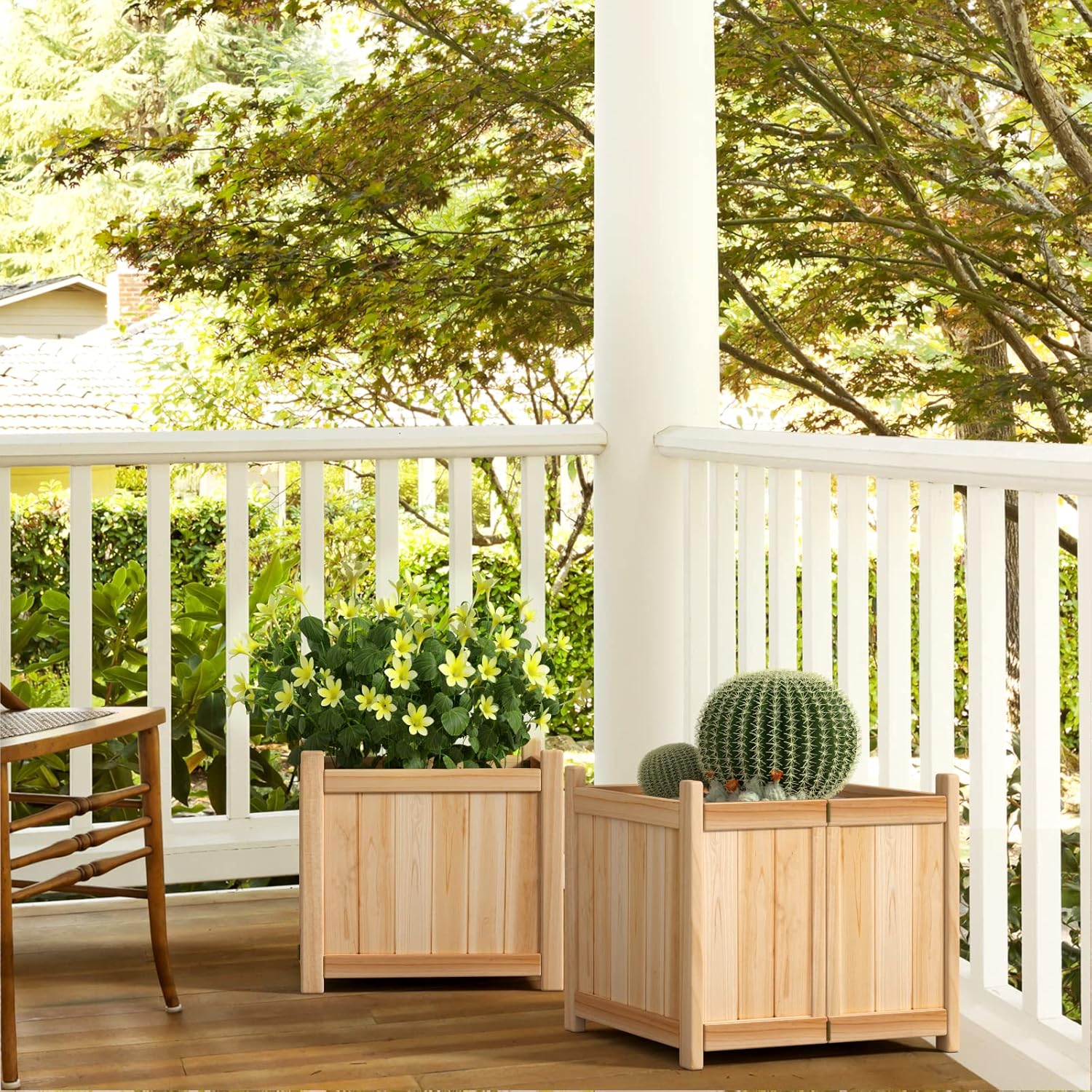 - 【Wood Slats for Plant Ventilation】The planter box is constructed of several wood slats on four sides. There is a slight gap between the slats for plant ventilation.