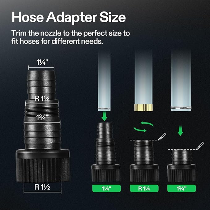 - Easy Installation: Adjustable outlet direction and 20.3 ft; Power cord to meet a variety of requirements; Flexible tube size of 1” or 1-1/4” internal diameter; Can be used together with filter systems