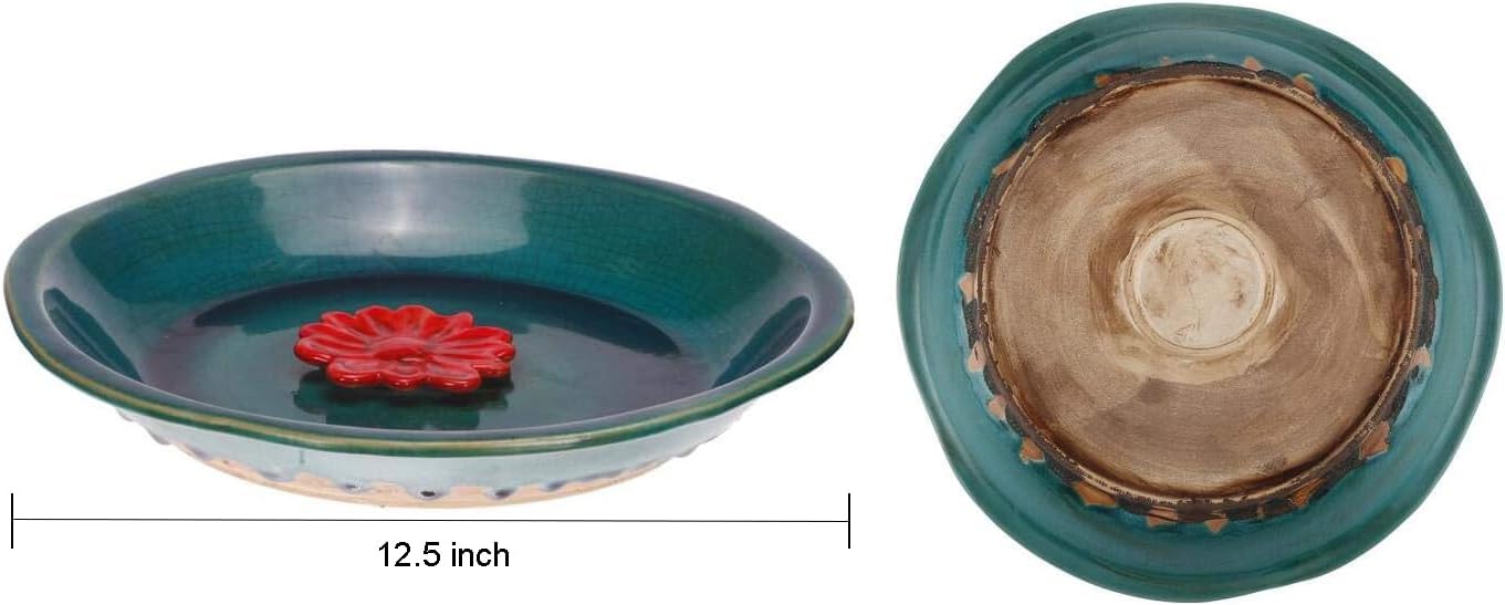 Topadorn Birdbath Ceramic Bowl Decor for Bee Bird Bath Outdoor Garden Vintage Yard,Blue with Red Flower