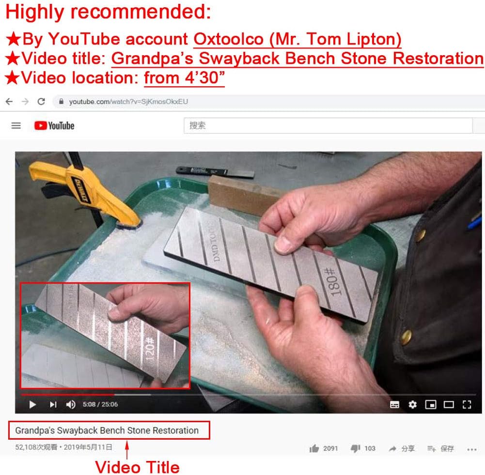 - 【Highly recommended】This diamond flattening stone was highly recommended by a YouTube account Oxtoolco (Mr. Tom Lipton) in the YouTube machinist community. Video title: Grandpa’s Swayback Bench Stone Restoration. Video location: 4’30”.