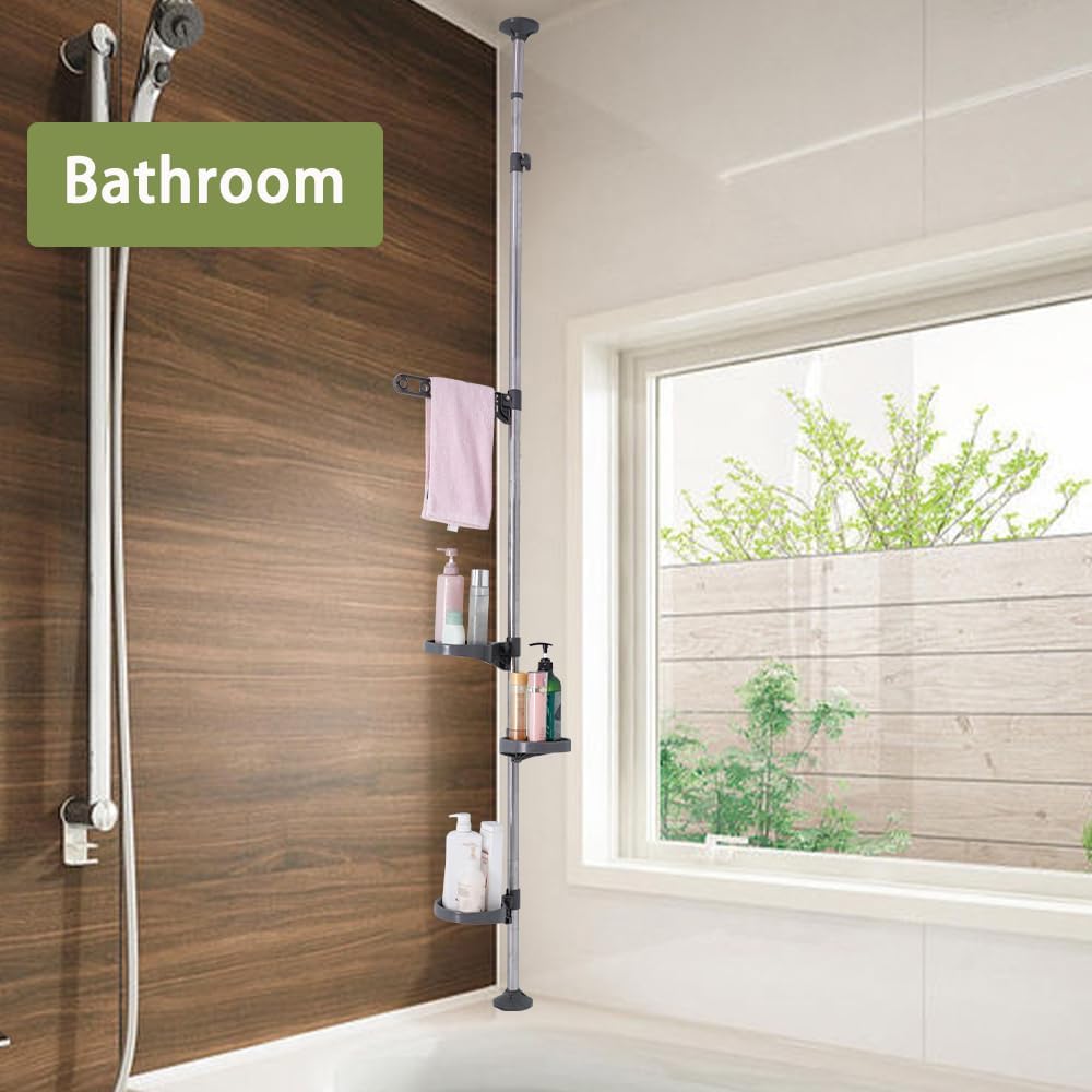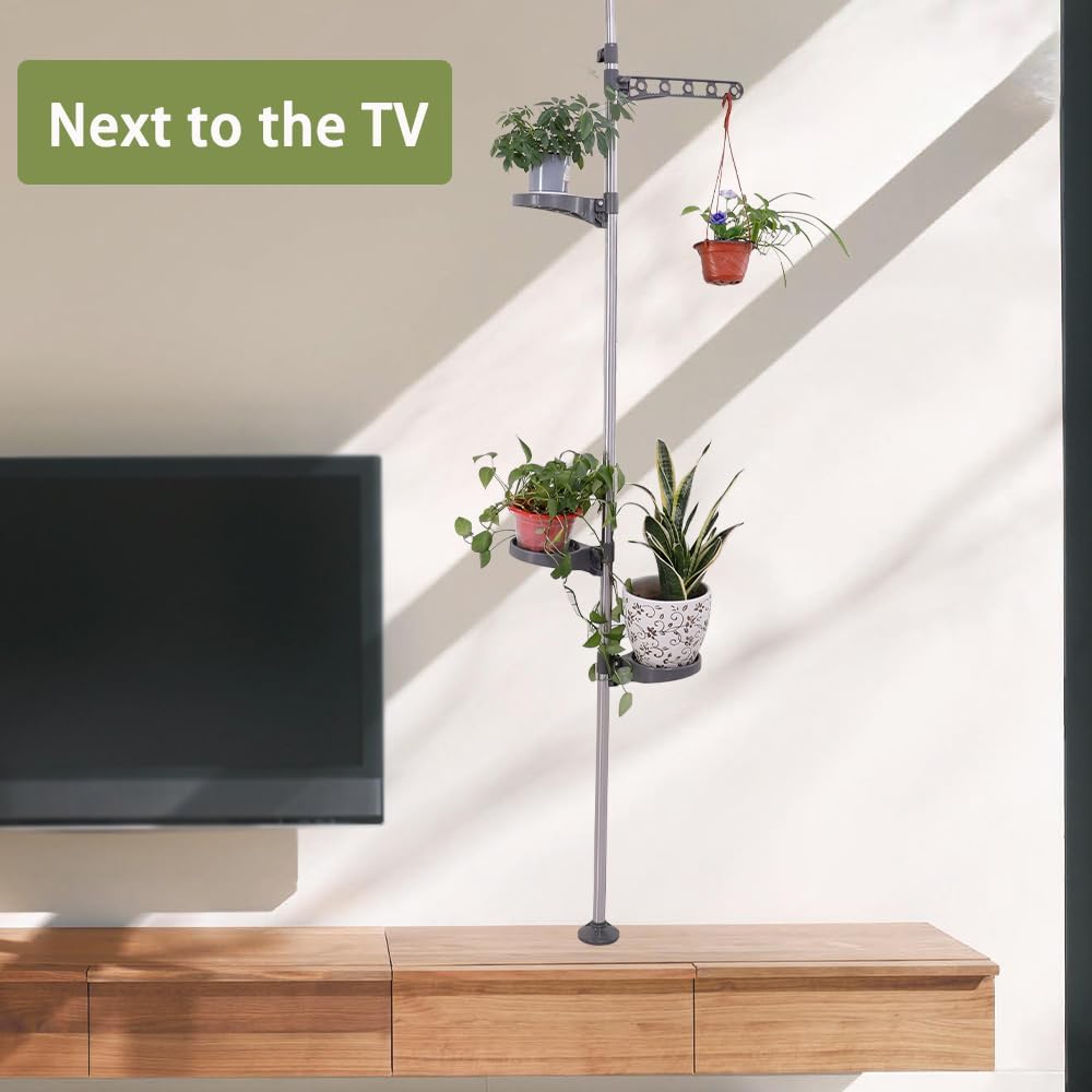 Hershii Indoor Plant Stand Pole Tension Rod Corner Standing Shelf Adjustable Flower Pots Holder Display Rack with 1 Hook & 3 Trays - Grey