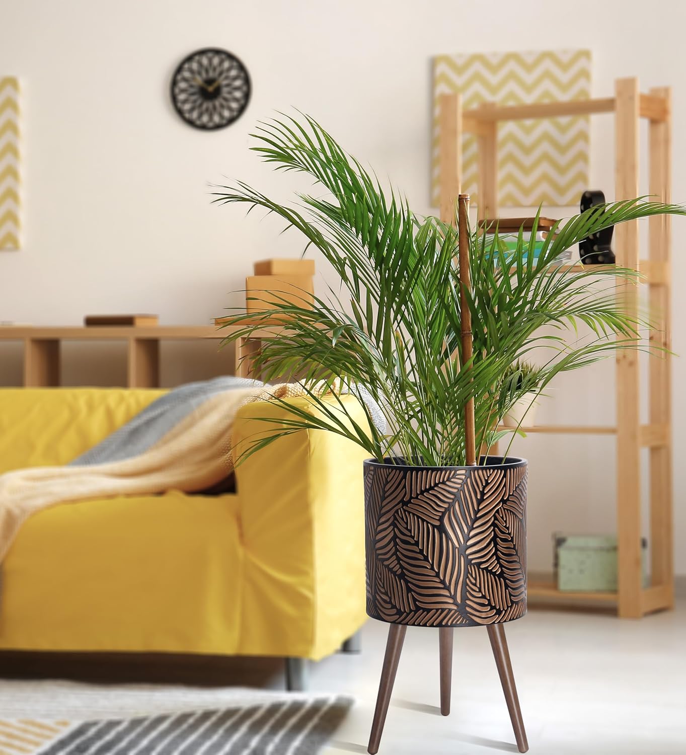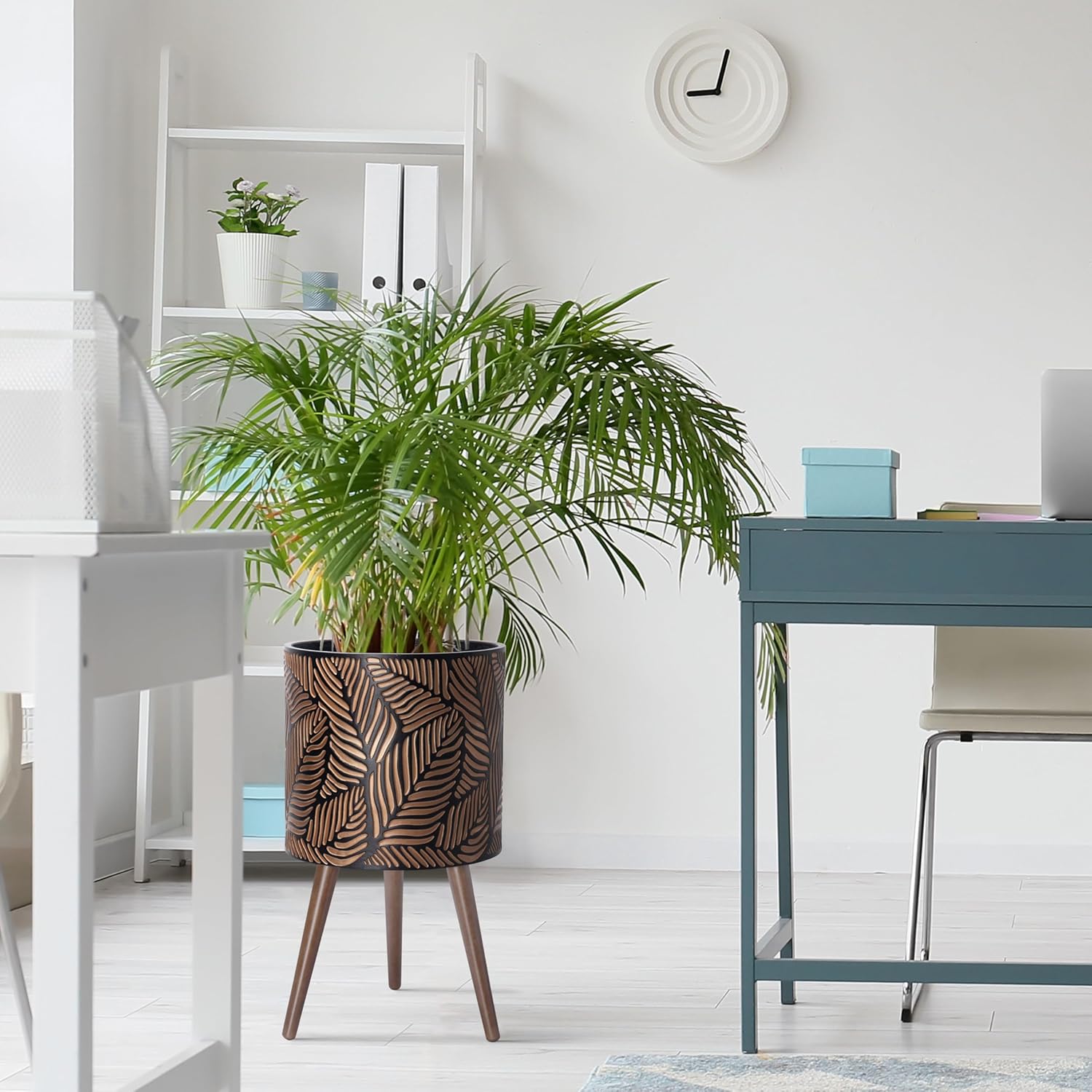 D'vine Dev 14 Inch Planter Pot with Stand, Mid-Century Tall Plant Pot with Legs for Indoor Plants, X-Large, Bronze/Grey, 88-L-D-6