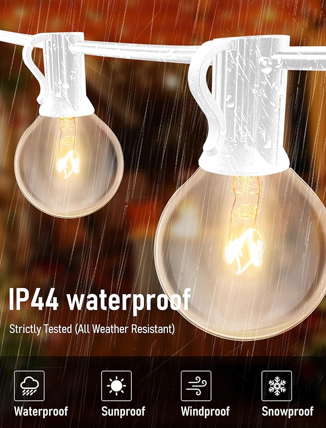 - WATER-RESISTERN: White string lights are indoor/outdoor use, commercial-strength casing withstands extreme temperatures and wet weather. You can use zip ties or cup hooks to hang the string lights where you want to hang. Keep the string lights plug as dry as possible