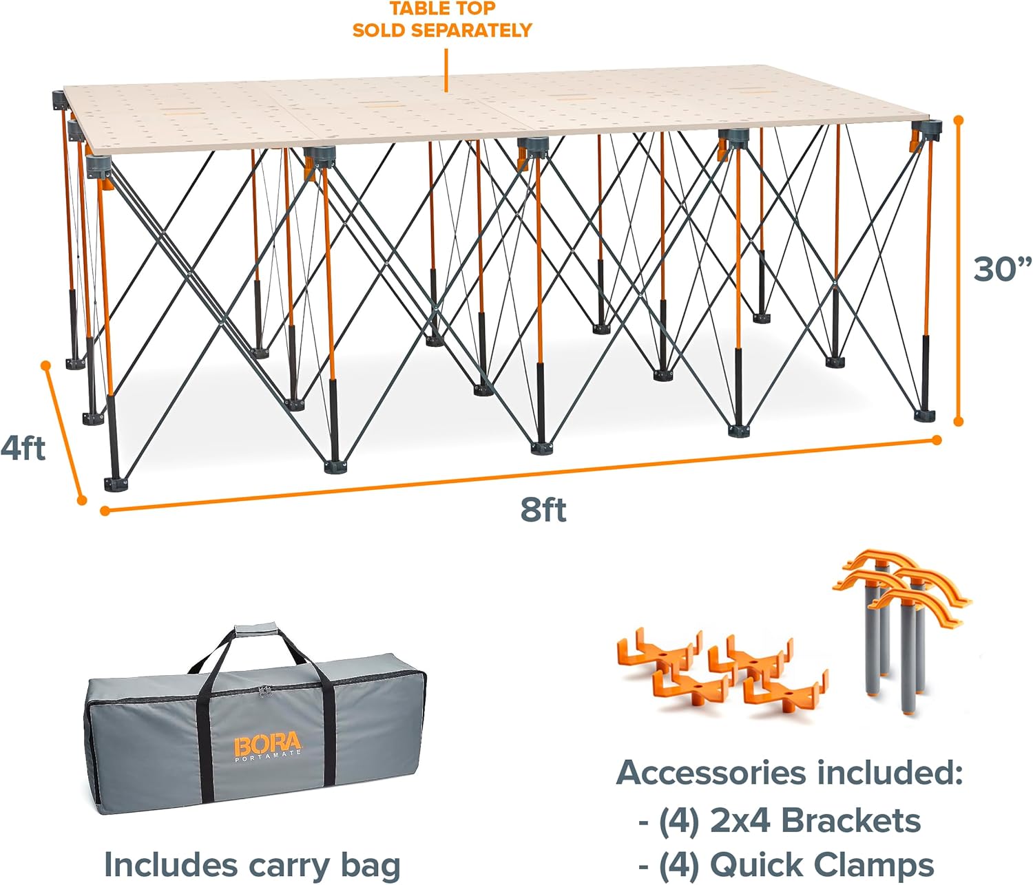 BORA Centipede 30in Folding Work Table Set - No Assembly 15-Strut Collapsible Table 6000lb Weight Limit - 4x8ft Mobile Work Station with Storage Bag, Foldable Work Bench Table - CK15S, Orange