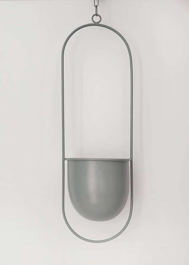 Boho Green Metal Plant Hanger,Metal Wall and Ceiling Hanging Planter, Modern Planter, Mid Century Flower Pot Plant Holder, Minimalist Planter for Indoor Outdoor Home Decor