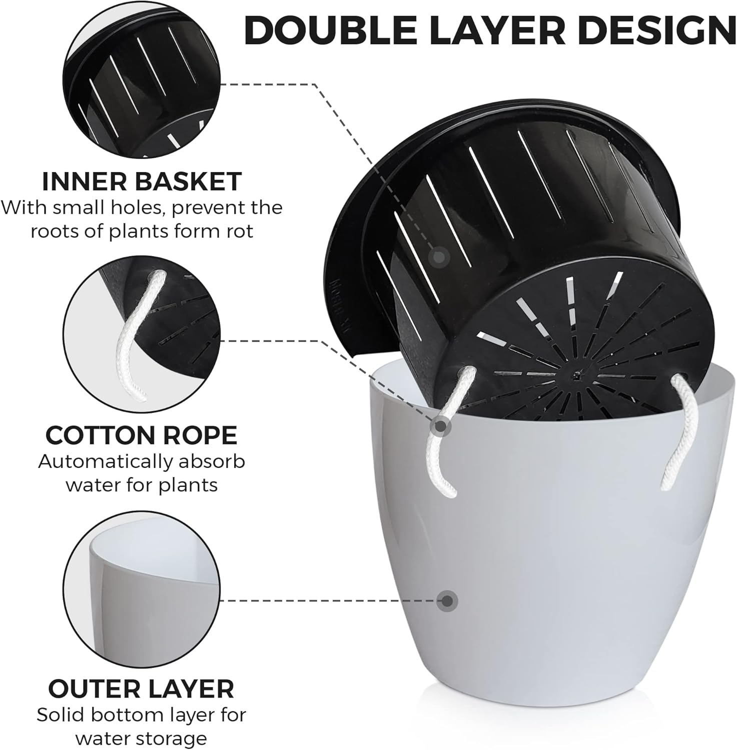 - [ Size: ] Outer Pot Diameter 7.28 inches and Height 6.1 inches. Inner Pot Diameter 5.7 inches and Height 3.93 inches. Top Opening for Soil and Plant has a diameter of 5 inches. Made with lightweight durable PP plastic