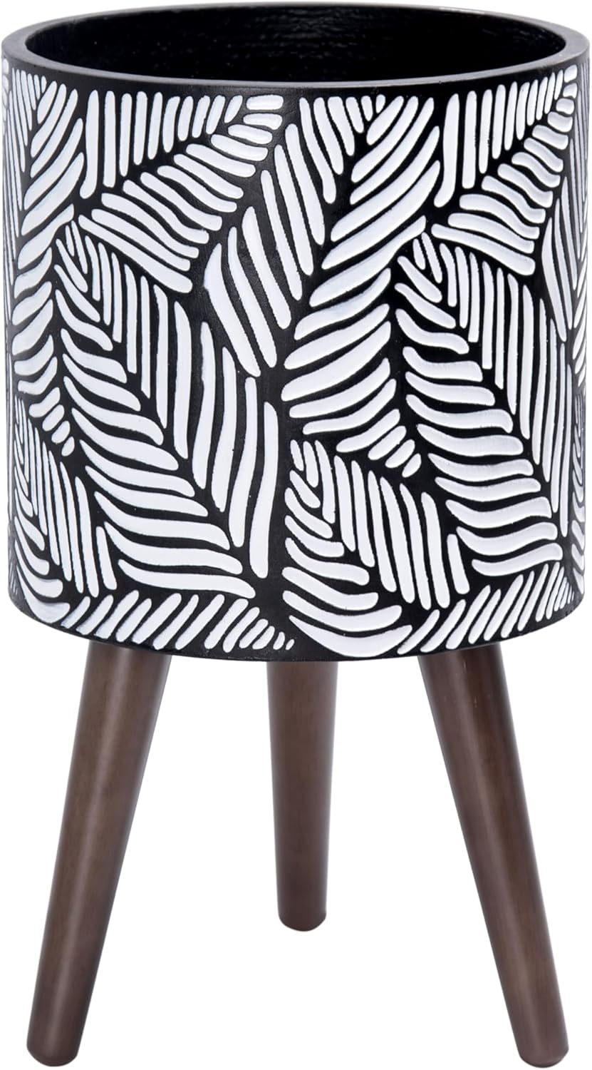 D'vine Dev 10 Inch Planter Pot with Stand, Mid-Century Tall Plant Pot with Legs for Indoor Plants, Medium, White/Grey, 88-L-B-7