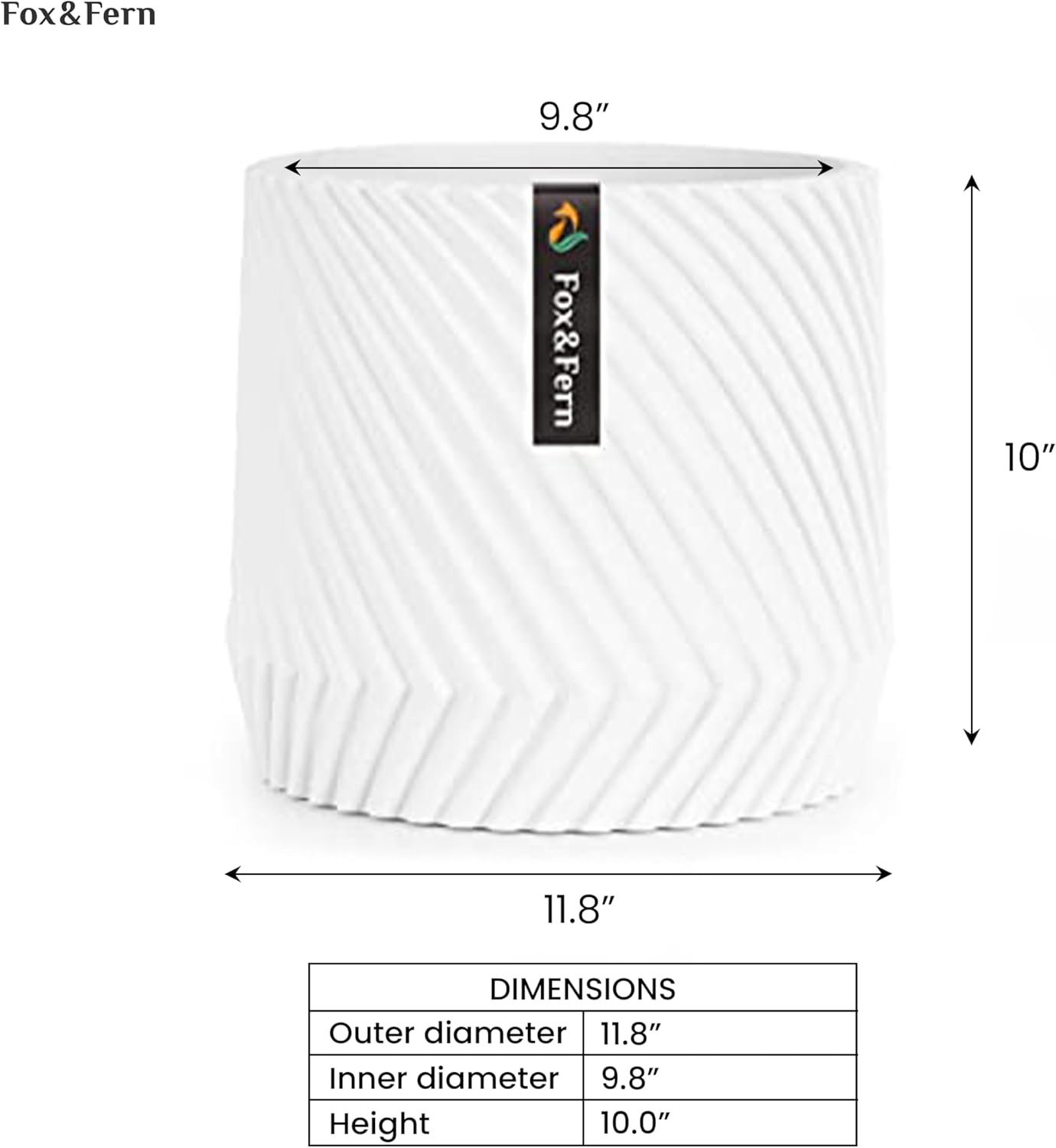 - LARGE PLANTER – This large 12 inch planter is 11.8” in outer diameter and 9.8” in inner diameter, allowing you to conveniently fit your large-sized plant. Dimensions: Outer width: 11.8" | Inner width: 9.8" | Height: 10.0"