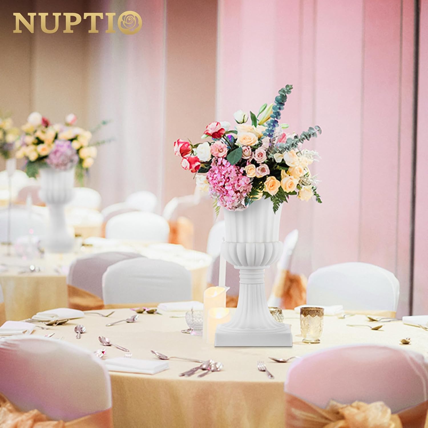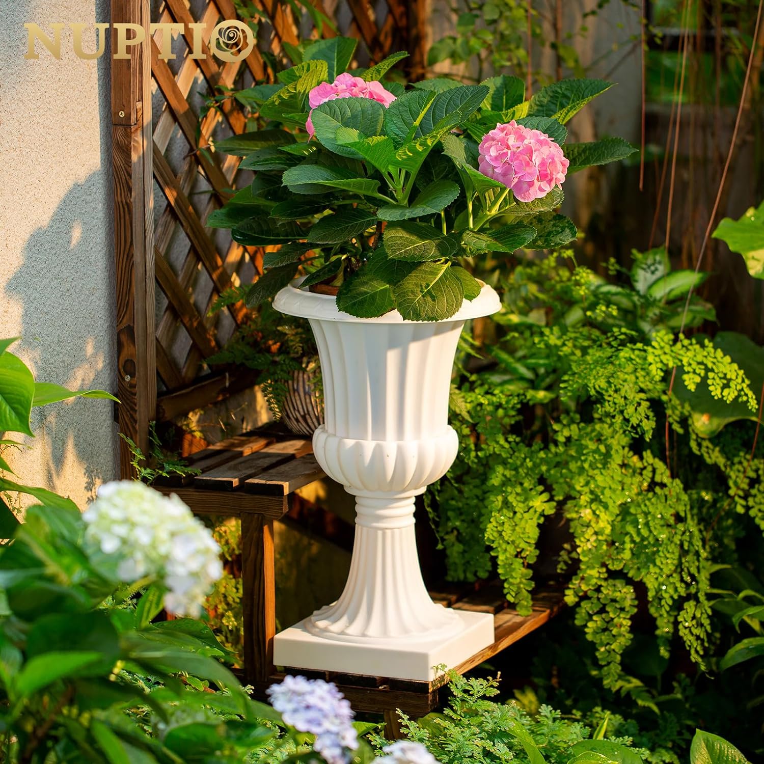 NUPTIO 2 Pcs Classic Urn Planter, 19.7 inch Tall Large Plastic Outdoor Urns Planters, Pedestal Flower vases Plant Pot, Resin Grecian Plants pots for Garden Porch Front Door, White
