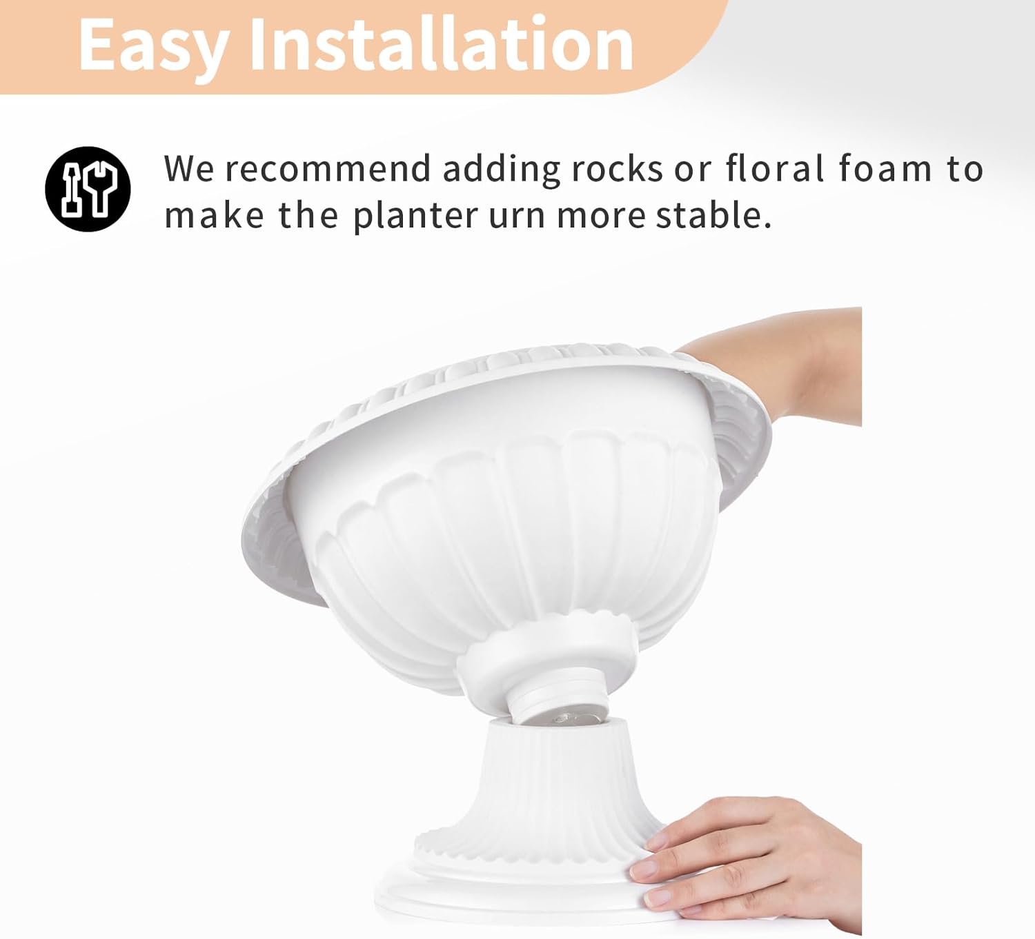 - SIMPLY ASSEMBLY: This sturdy urn planter consists of 2 pieces that are easily assembled and taken apart.