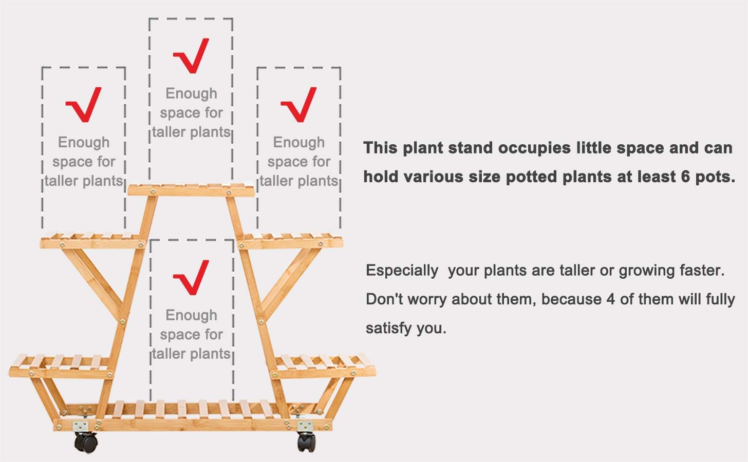 Bamboo Rolling 6 Tier Plant Stand Rack Multiple Flower Pot Holder Shelf Indoor Outdoor Planter Display shelving unit for Patio Garden Corner Balcony Living Room