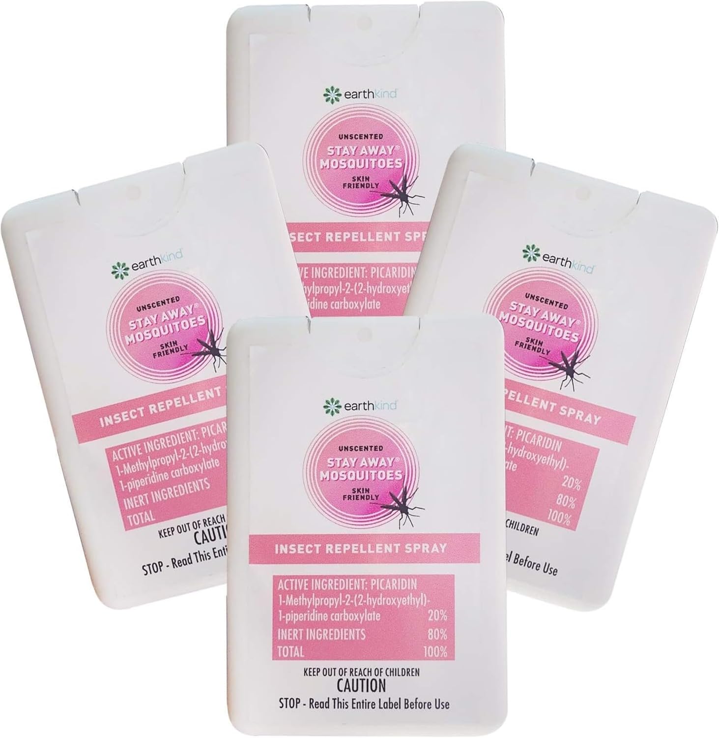 EarthKind Stay Away Mosquitoes Insect Repellent - Plant-Based, Unscented Mosquito Body Spray with Picaridin - Up to 14-Hour Protection - Safe for Children When Used As Directed - Travel Size (4-Pack)