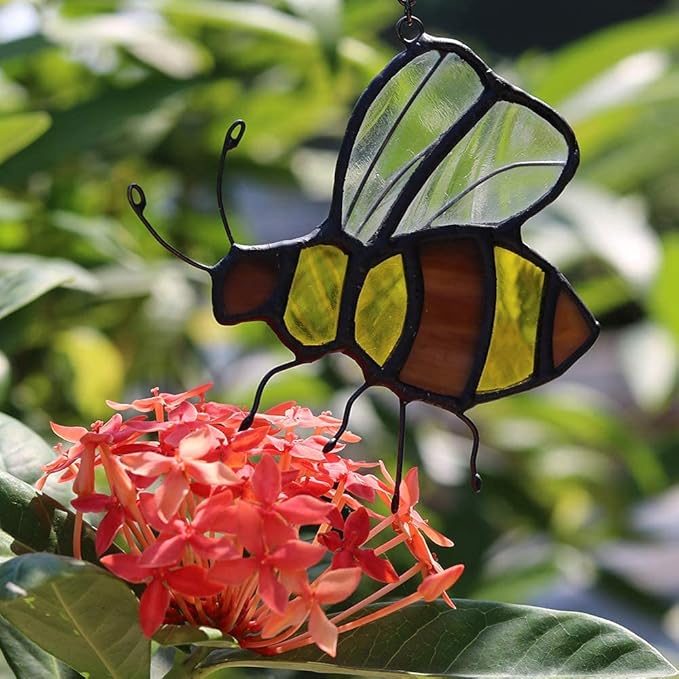 - 【Honey Bee Decorations for Windows】Stained glass bee ornaments is skilled handmade by stained glass sheet. Hand-cut stained glass pieces are soldered together using the copper foil metho