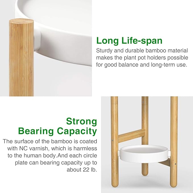 - đ·ăMade of 100% solid bambooăEspecially durable and sturdy. The 3 round plant pots are made of carbon steel, which is more advanced and sturdy than plastic ones, making each circle plate more anti-rust, easy to clean, better bearing.