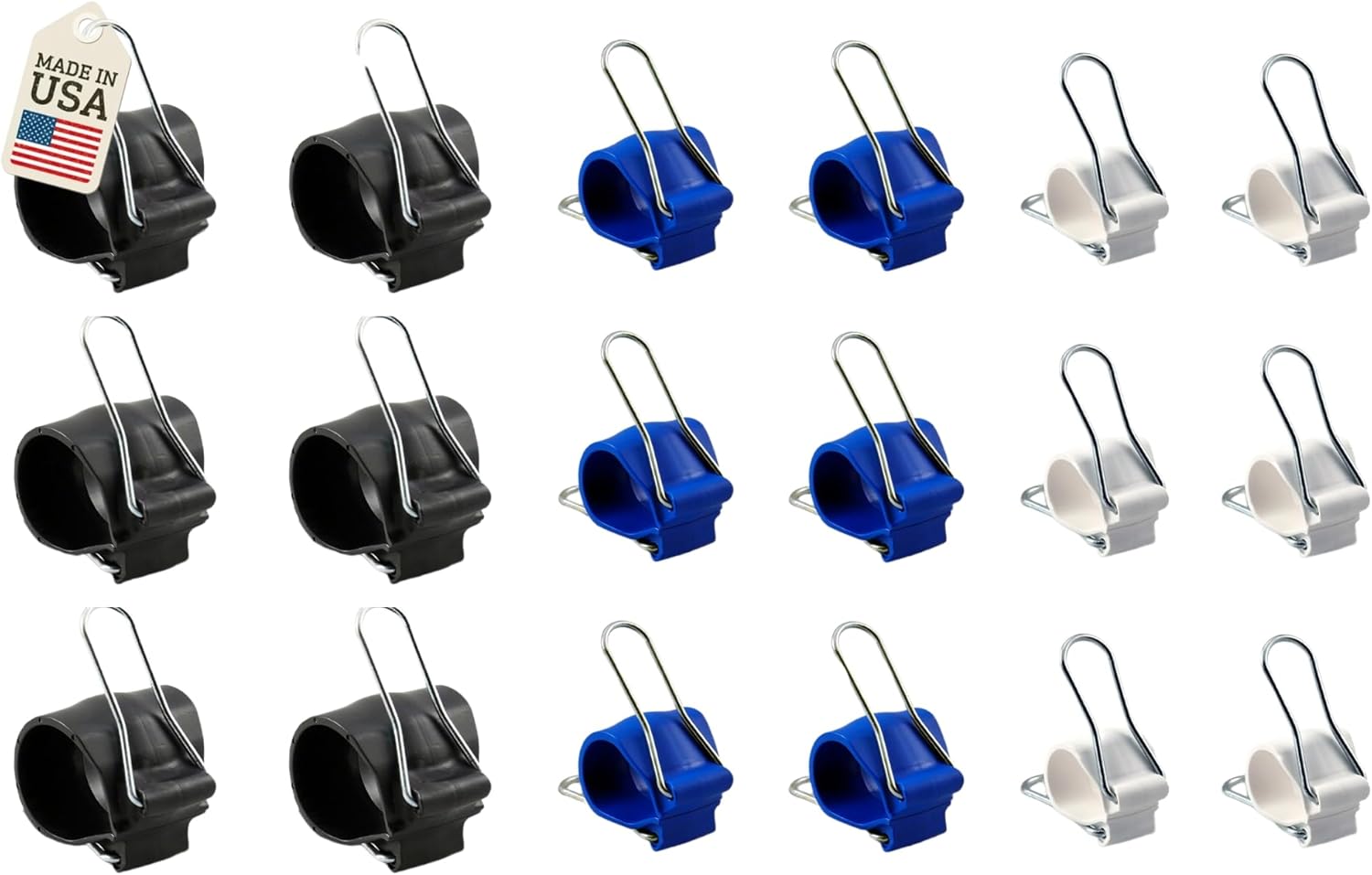 Cable Management Clips: Versatile Reusable Cord Holders for Christmas Lights, Holiday Decor, and Outdoor String Lights - 18 Pack (6 Small White, 6 Medium Blue, 6 Large Black)