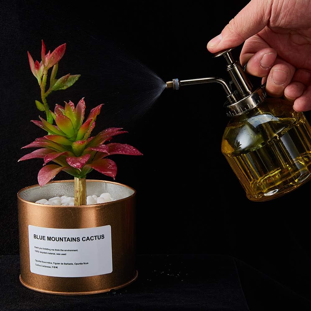 - Succulent mister material: thickened glass container + plastic painted metallic top pump.