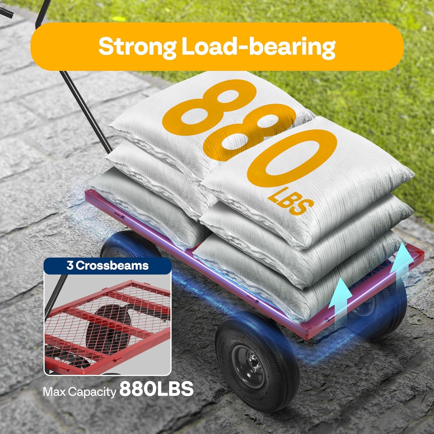 - FLEXIBLE HANDLES - The handles have a 180° turn design, so you can haul the cart in any direction freely and conveniently as you need; Its ergonomic design is comfortable for you to pull goods in an elegant way; It works well to turn your tiresome transports into one-time trips, showing excellent maneuverability even fully loaded