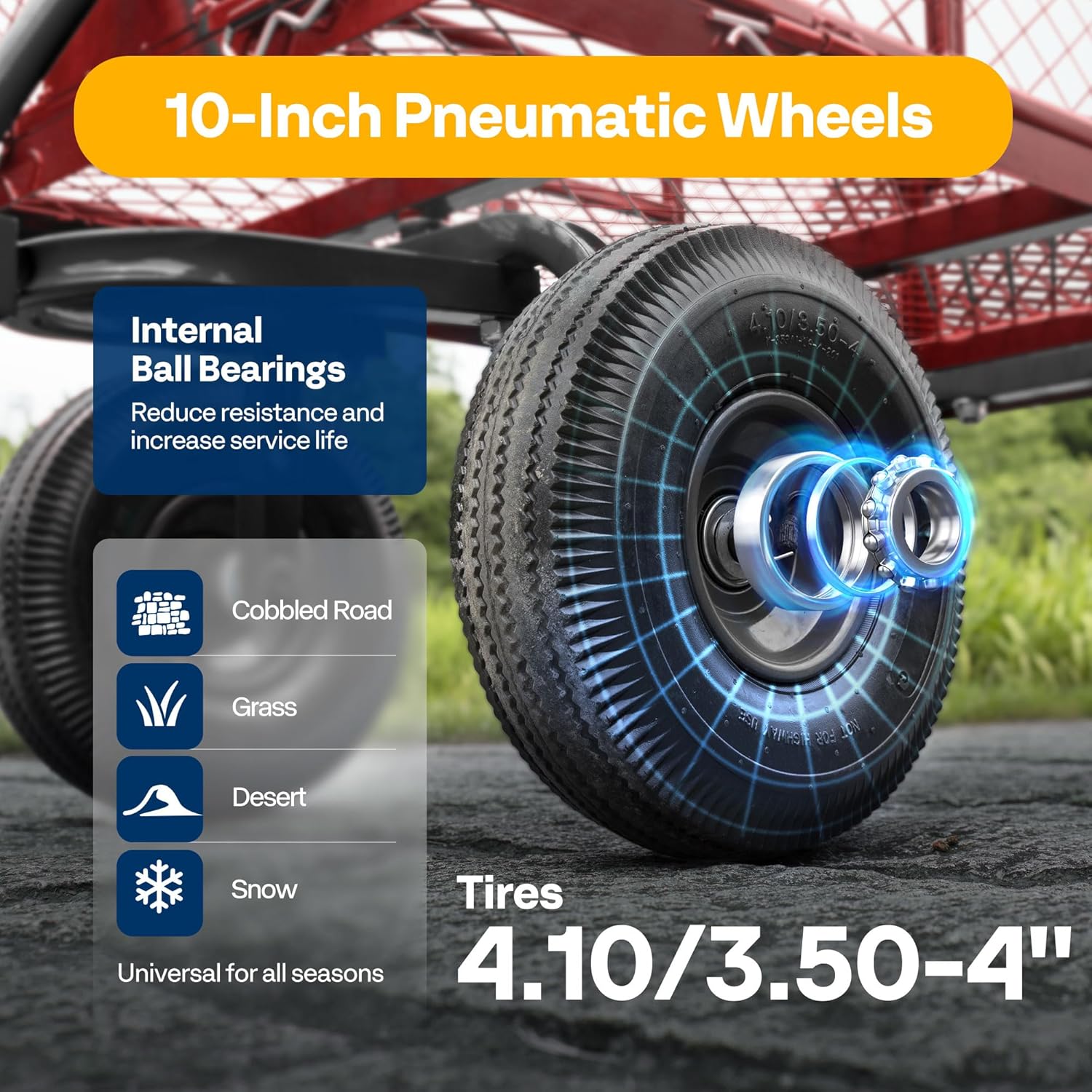 VIVOHOME Heavy Duty 880 Lbs Capacity Mesh Steel Garden Cart Folding Utility Wagon with Removable Sides and 4.10/3.50-4" Wheels 10 inch Tire(Red)