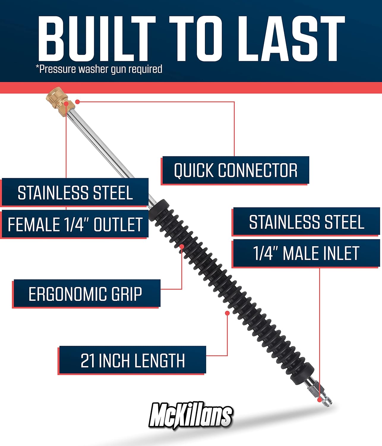 McKillans® Car Pressure Washer Extension Wand - Power Washer Wand Extension for Car Wash - Short Pressure Washer Wand Replacement - Pressure Washer Accessories & Attachments - 1/4” Quick Connect Plug