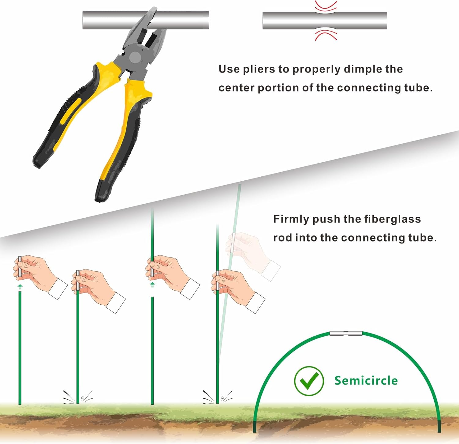 - Only 2 Poles Per Arch – No Fragile Multi-Piece Hassle! Say Goodbye to multiple Short Rods & Weak Joints! Unlike flimsy multi-section kits, our greenhouse hoops use just 2 solid fiberglass poles per arch – joint together in 1 seconds! No tiny parts to lose, no frustrating assembly. Save 70% time and reduce breakage risk by 90% vs. complex designs on the market.