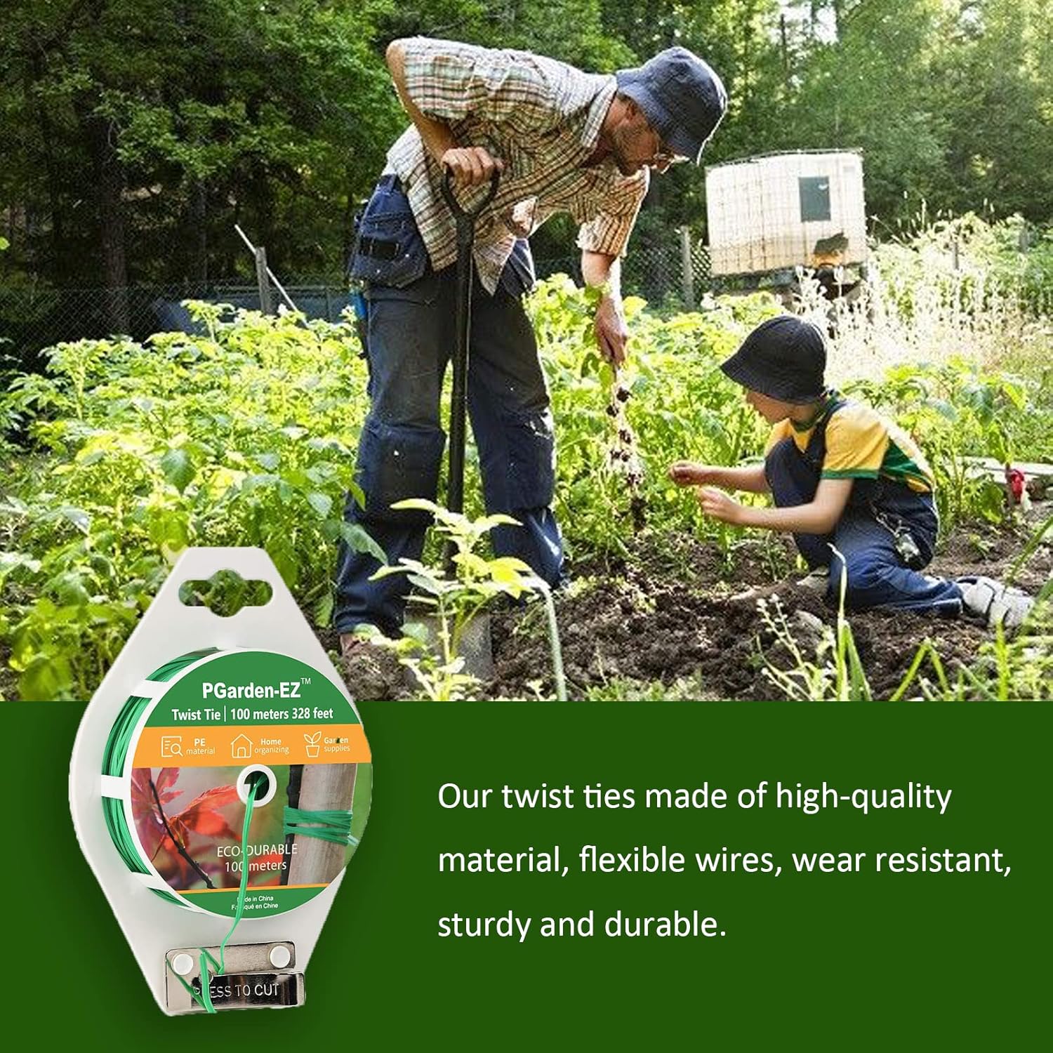 - PREMIUM MATERIAL & AMPLE LENGTH: Our Twist Ties are made from high-quality, rustproof, and odorless PE material with an eco-friendly and durable green coating. Unlike PVC, our PE material does not peel off or become too rigid on the spool. With a generous length of 328 feet, it is built to last for long-term use, providing you with an exceptional gardening experience.