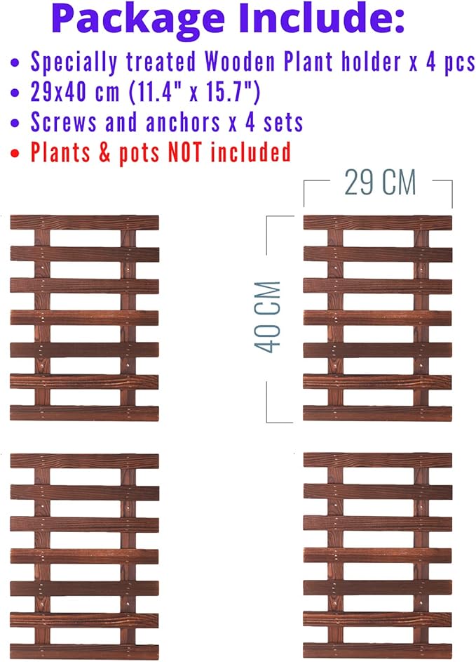 - 29x40cm (11.4" x 15.7") x 4 pcs. Plants, flowers, pots, decorations are NOT included