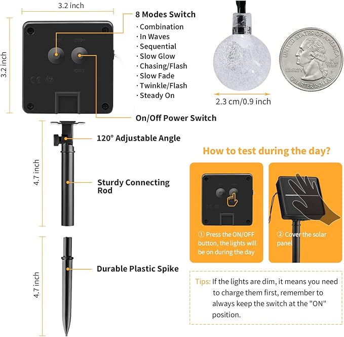 - 【Solar Powered & Auto On/Off】Solar energy supply, adjustable monocrystalline silicon solar panel with better conversion rate of energy, no need to replace the battery or extra utility electric cost; Light sensor controls the solar globe lights auto on at dark and auto off at daytime.