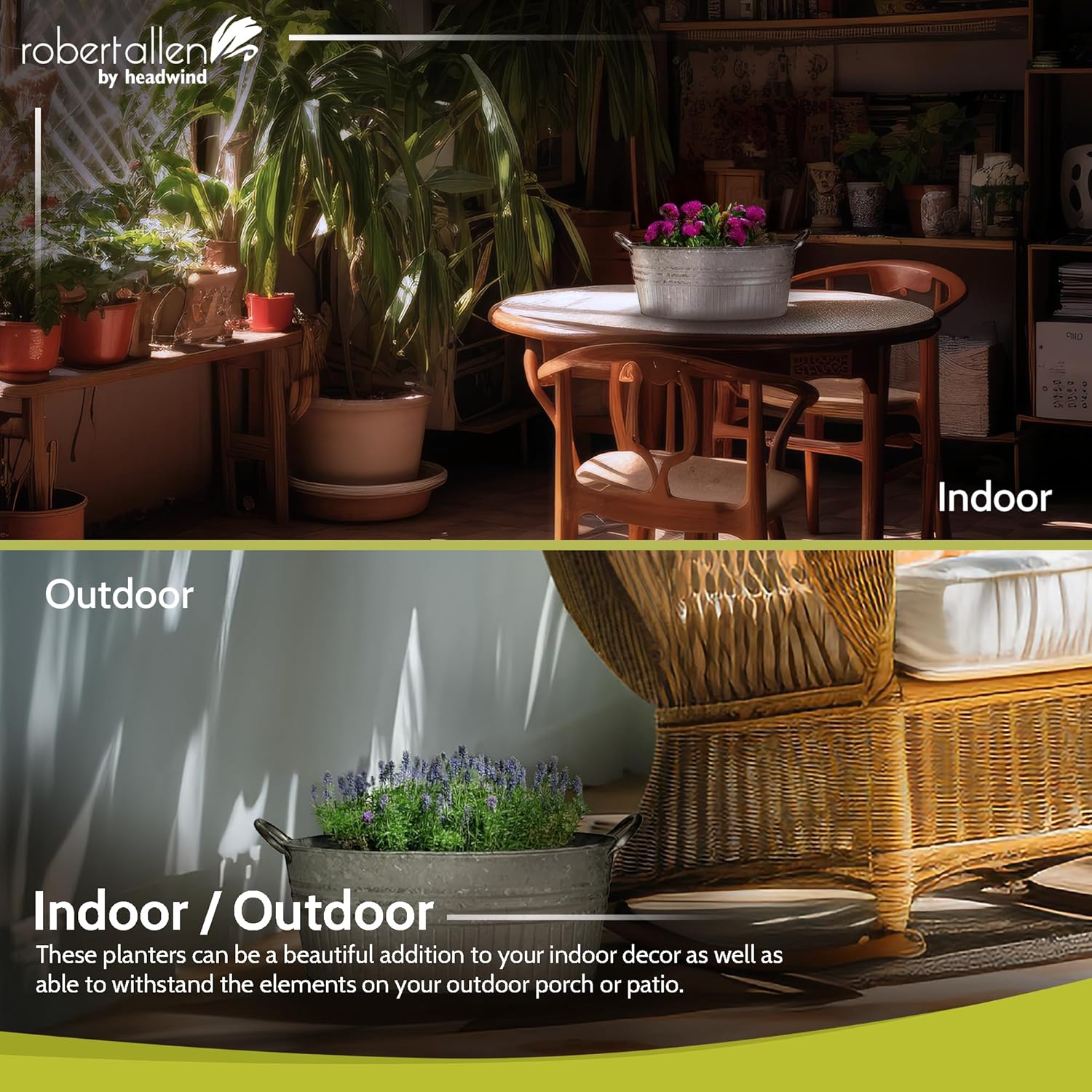 Headwind Robert Allen 16.5" Oval Tub Metal Planter w/Handles – Lightweight Galvanized Steel with Drainage Holes – Indoor/Outdoor Garden Pot