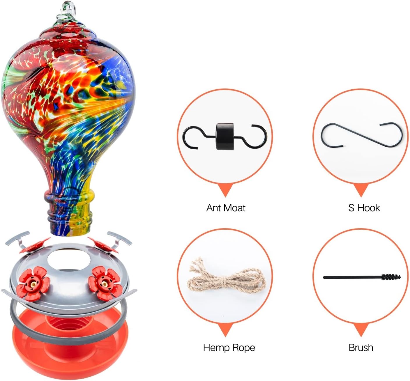 - ALL-ROUND CARE: With ant guard and bee proof metal base. Ant moat to keep unwanted visitors far away. The base is equipped with 4 perches for hummingbirds to rest. Smaller feeder ports with premium copper material designed NEVER hurt bird's tongue.