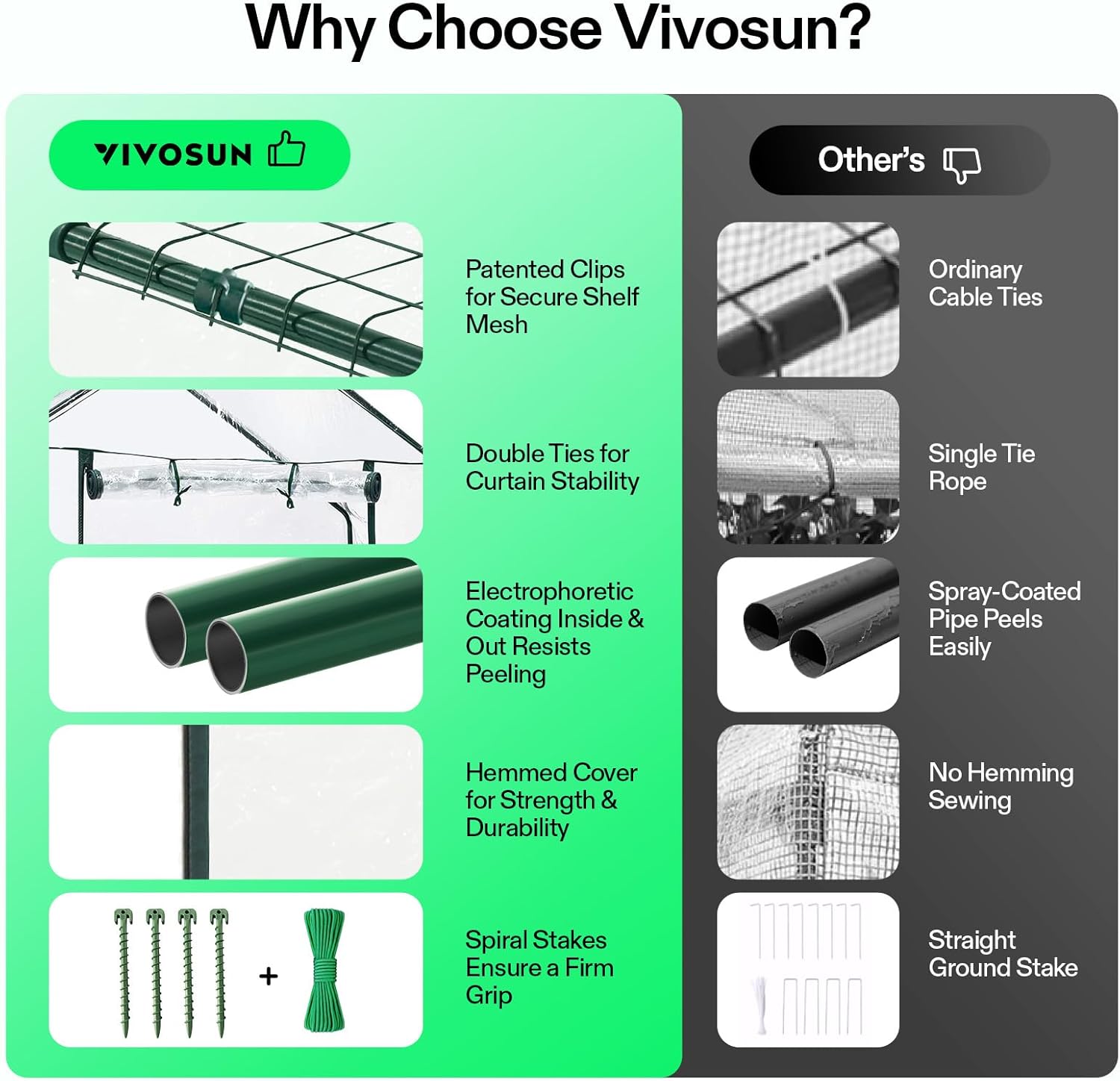 - Portable, Easily Stored: All accessories are included, so by following the step-by-step instructions, adults can easily set up our Vivosun green house without any other tools.When the season changes, it can be easily folded into a bag for storage and transport