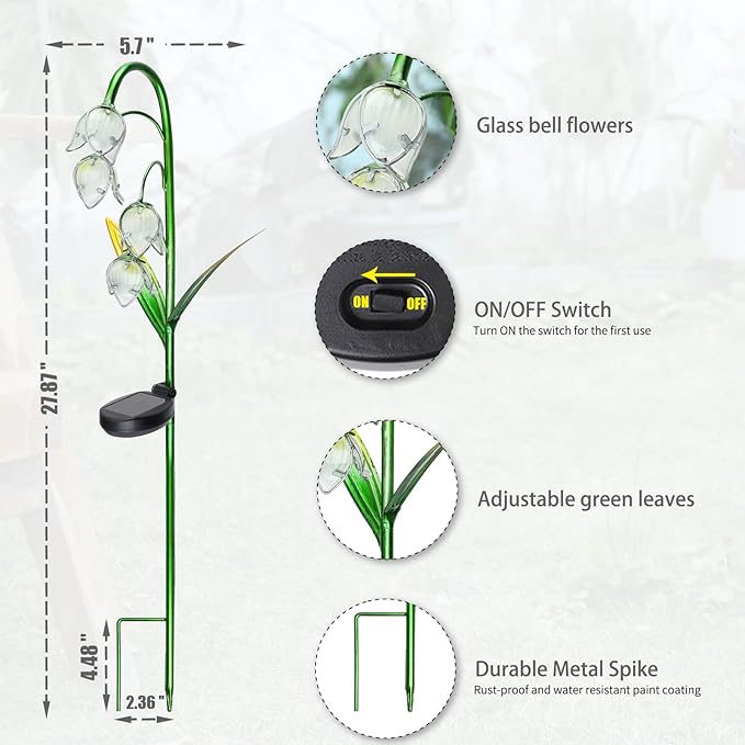 - Solar Garden Decor : Press the switch to on position, when the solar pannel getting enough sunlight, the led lamp will be turned on automatically at light.It is saving energy and protecting environment.