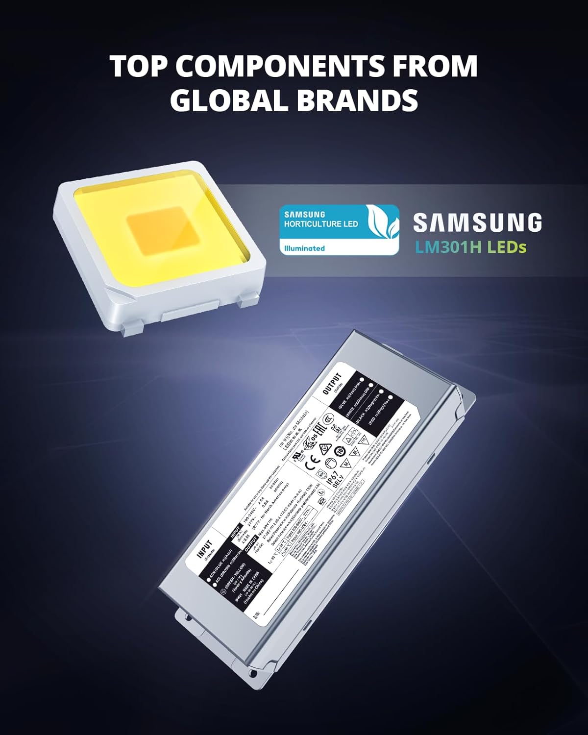 - TOP Grow Light with Daisy Chain Function: the XS1000 compatible with Samsung LM301H diode to achieve the best PAR distribution and highest light penetration for maximized plant yield. The daisy-chain feature allows connecting up to 20 pcs XS1000 grow lights—ideal for commercial farming, horizontal/vertical growing, greenhouses, hydroponics, and more. Easy to install, beginner friendly, suitable for every grower.