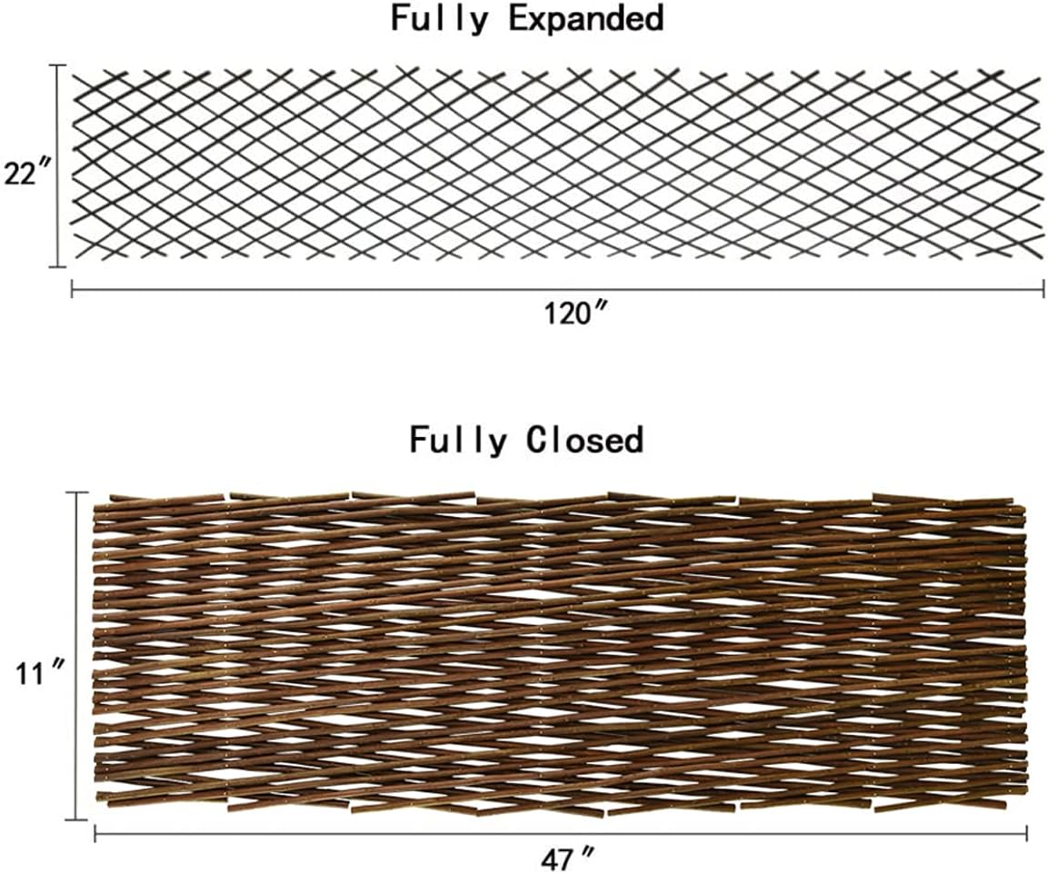 - WIDELY USED: The nature expandable willow trellis can be used as fences , expandable door, trellis , support for climbing plants, also can be matched with solar LED lights, warm and beautiful night atmosphere and used for any other decorative purpose, suitable for indoor and outdoor use