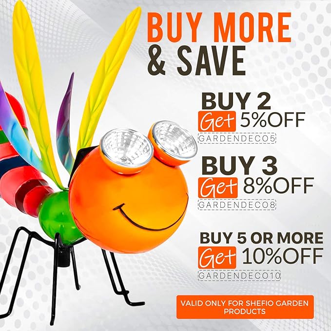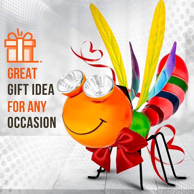 - This solar dragonfly lights outdoor is perfect for your garden. Add charm and serenity to your outdoor space with this dragonfly lawn ornament or large metal yard art.