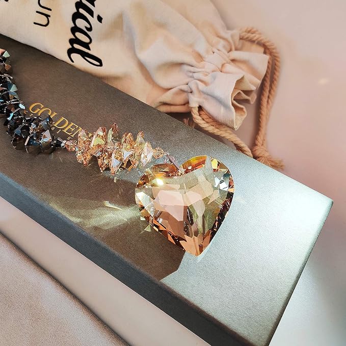 - INCLUDES - Jewelry Crystal Pendant + Champagne Heart K9 Crystal 1.77" + Stainless Steel Chain 15.5". Our pendant and crystal are detachable, so you can DIY your GOLDENHAITAI suncatcher