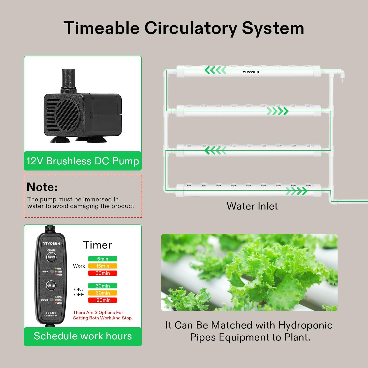 - What You Get: Comes with 1 set of planting pipes, 1 water pump timer, 1 water pump, 1 tube, 1 power plug, planting basket and sponge, 1 tweezers, 3 instructions (planting instructions, assembly instructions, timer instruction manual) and 1-year warranty
