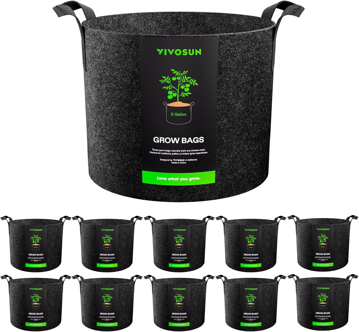 VIVOSUN 10-Pack 5 Gallon Grow Bags, Reinforced Planter Fabric Pots for Gardening Black